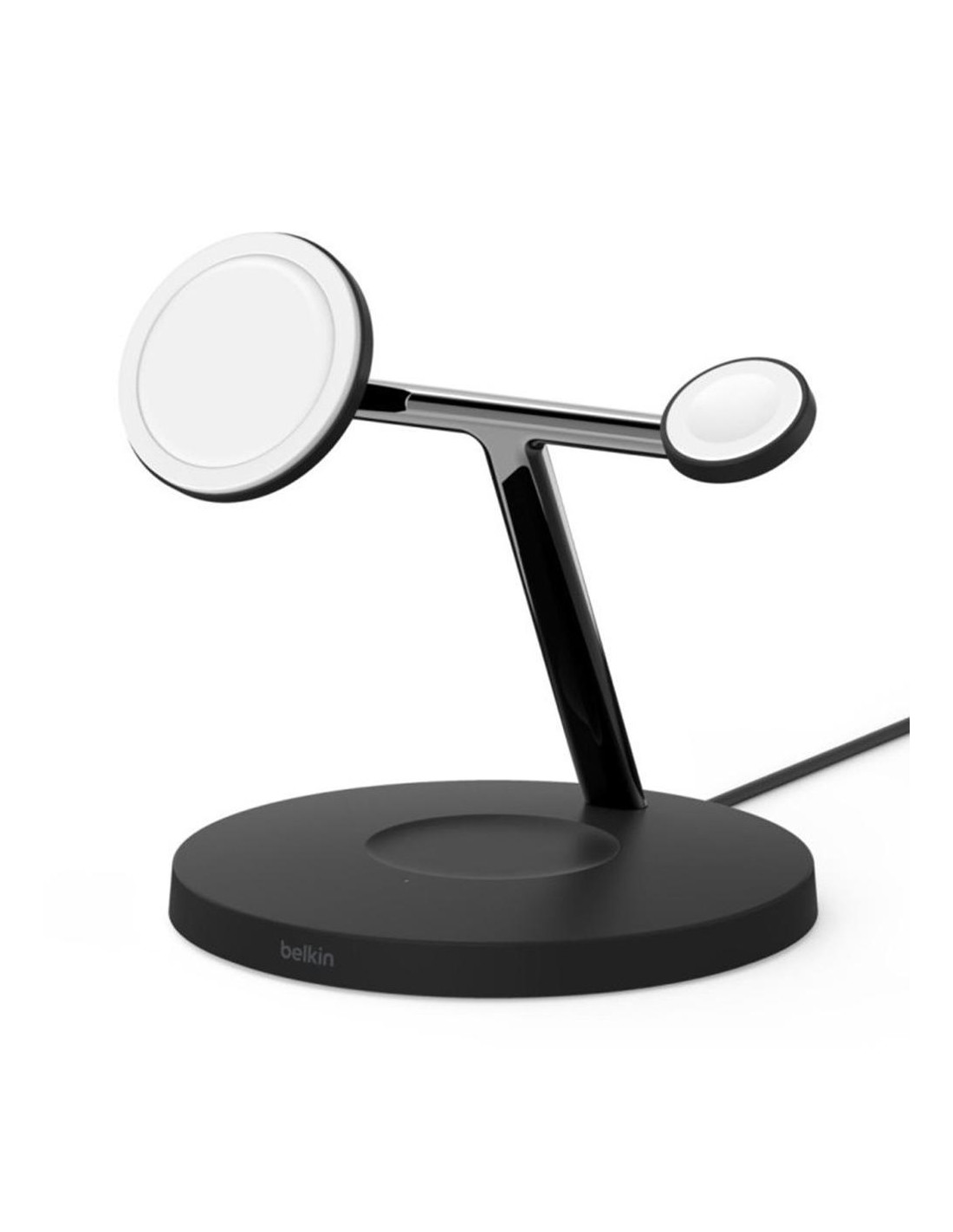 La base de carga Belkin Powerhouse WIZ017vfbk está diseñada para usuarios de dispositivos Apple que buscan una solución cómoda, elegante y eficiente para cargar de forma simultánea su iPhone con MagSafe, Apple Watch y AirPods. Con un diseño compacto en color negro y una potencia de hasta 15 W, ofrece carga rápida e inalámbrica en un solo punto, optimizando tu espacio y simplificando tu rutina diaria.