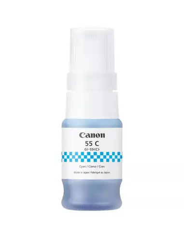 La botella de tinta cian GI-55C de Canon contiene un pigmento nítido que permite producir documentos y fotos de calidad empresarial en casa y en el trabajo. Al combinarla con un conjunto completo de tintas pigmentadas