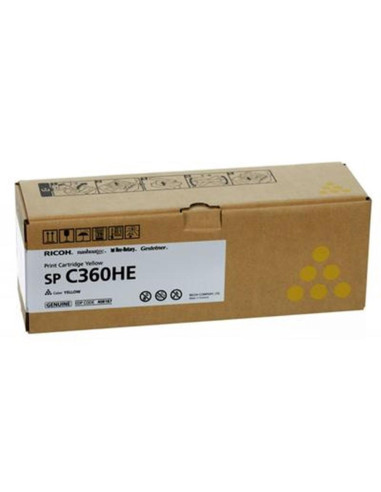 El cartucho de impresión **RICOH Print Cartridge Yellow SP C360HE** está diseñado para ofrecer un rendimiento estable y una calidad de color amarillo precisa en impresoras láser Ricoh. Es una opción ideal para oficinas, pequeños negocios y entornos que requieren documentos con colores vivos y resultados uniformes. Su diseño original garantiza una integración perfecta con el equipo y un funcionamiento fiable.