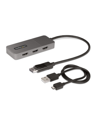 StarTech.com Hub MST de 3 Puertos - Multiplicador Divisor DisplayPort a 3 Puertos HDMI 4K60Hz - Adaptador Gráfico DP 1.4 Multimonitor - Cable de 30cm - Alimentado por USB - Solo Windows. Longitud de cable: 0,3 m, Conector 1: DisplayPort, Conector 2: 3 x HDMI. Peso: 71 g, Ancho: 43 mm, Profundidad: 105 mm. Ancho del paquete: 142 mm, Profundidad del paquete: 170 mm, Altura del paquete: 30 mm. Ancho de la caja principal: 440 mm, Longitud de la caja: 473 mm, Alto de la caja principal: 331 mm. Material: Plástico