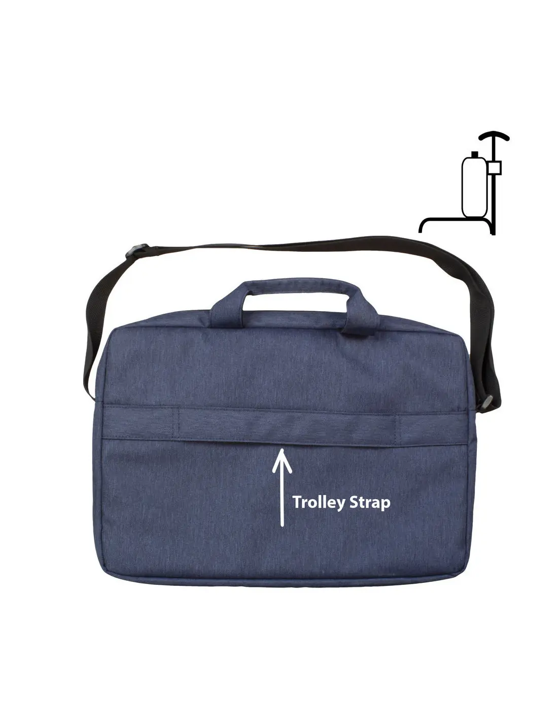 para guardar sus documentos, adaptador de corriente, ratón y otros periféricos. Lleve su computadora portátil con facilidad gracias a las cómodas asas y la correa ajustable para el hombro. La bolsa se acopla fácilmente a su maleta.