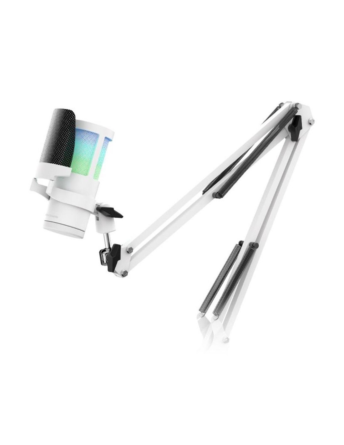 Este micrófono incluye todo lo necesario para una instalación rápida y funcional: brazo mecánico articulado, soporte de sobremesa, filtro anti-pop y cable USB. Además, su retroiluminación LED ARGB no solo aporta un toque estético, sino que lo hace destacar en cualquier entorno de grabación.