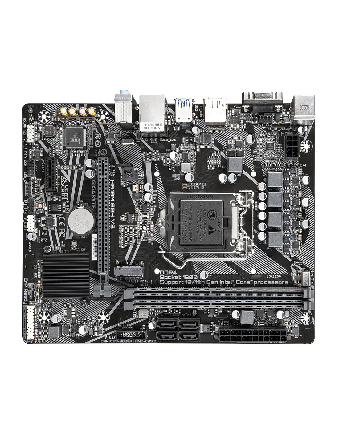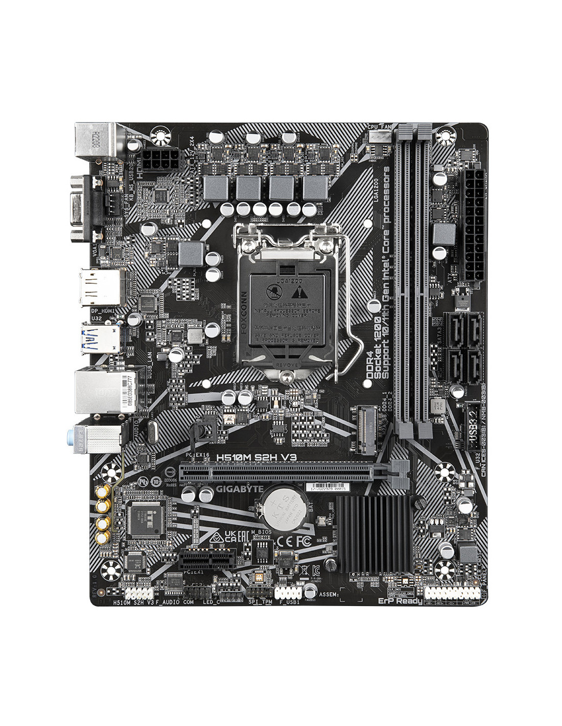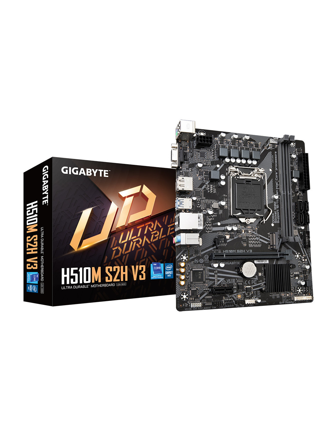 GIGABYTE H510M S2H V3 Placa base - Compatible con procesadores Intel Core 11th CPUs, up to 3200MHz DDR4, 1xPCIe 3.0 M.2, GbE LAN, USB 3.2 Gen 1. Fabricante de procesador: Intel, Socket de procesador: LGA 1200 (Socket H5), Procesador compatible: Intel® Celeron®, Intel® Core™ i3, Intel® Core™ i5, Intel® Core™ i7, Intel® Core™ i9, Intel® Pentium®. tipos de memoria compatibles: DDR4-SDRAM, Memoria interna máxima: 64 GB, Tipo de ranuras de memoria: DIMM. Interfaces de disco de almacenamiento soportados: M.2, PCI Express 3.0, SATA III, Tipos de unidades de almacenamiento admitidas: HDD & SSD. Máxima resolución: 4096 x 2304 Pixeles. Conector USB: USB tipo A