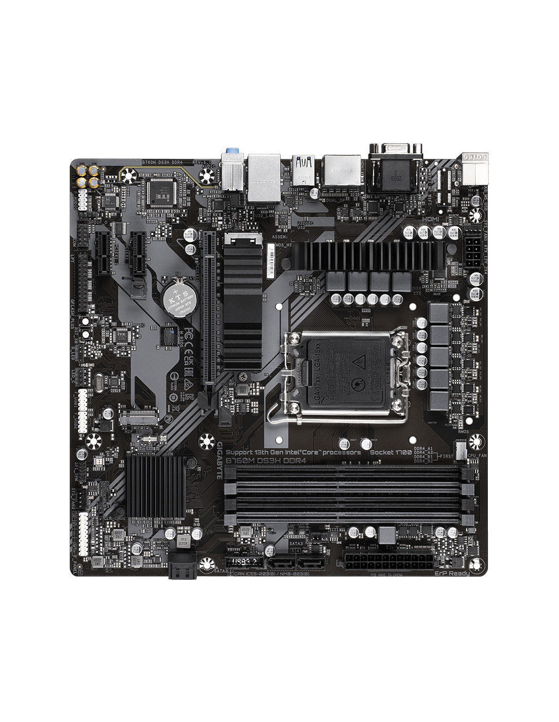 GIGABYTE B760M DS3H DDR4 Placa base - Soporta CPUs Intel Core de 14ª generación, VRM digital de 6+2+1 fases, hasta 5333MHz DDR4 (OC), 2xPCIe 4.0 M.2, LAN 2.5GbE, USB 3.2 Gen2. Fabricante de procesador: Intel, Socket de procesador: LGA 1700, Procesador compatible: Intel® Celeron®, Intel® Core™ i3, Intel® Core™ i5, Intel® Core™ i7, Intel® Core™ i9,.... tipos de memoria compatibles: DDR4-SDRAM, Memoria interna máxima: 128 GB, Tipo de ranuras de memoria: DIMM. Interfaces de disco de almacenamiento soportados: M.2, SATA III, Tipos de unidades de almacenamiento admitidas: HDD & SSD, Niveles RAID: 0, 1, 5, 10. Máxima resolución: 4096 x 2304 Pixeles. Tipo de interfaz ethernet: 2.5 Gigabit Ethernet