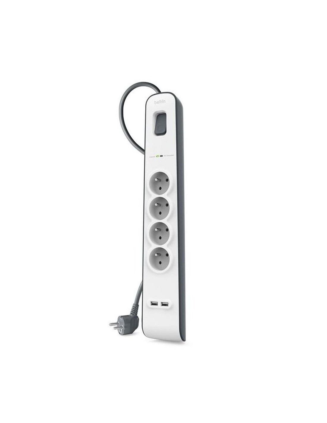 La regleta de protección contra sobretensiones Belkin BSV401VF2M es la solución ideal para proteger y alimentar varios dispositivos electrónicos a la vez. Con 4 tomas de corriente CA y 2 puertos USB, permite conectar ordenadores, portátiles, impresoras, routers y cargar smartphones o tablets con total seguridad. Diseñada con materiales de alta calidad y un sistema de absorción de energía de 525 J, asegura la protección frente a picos de tensión, descargas eléctricas y fluctuaciones de voltaje.