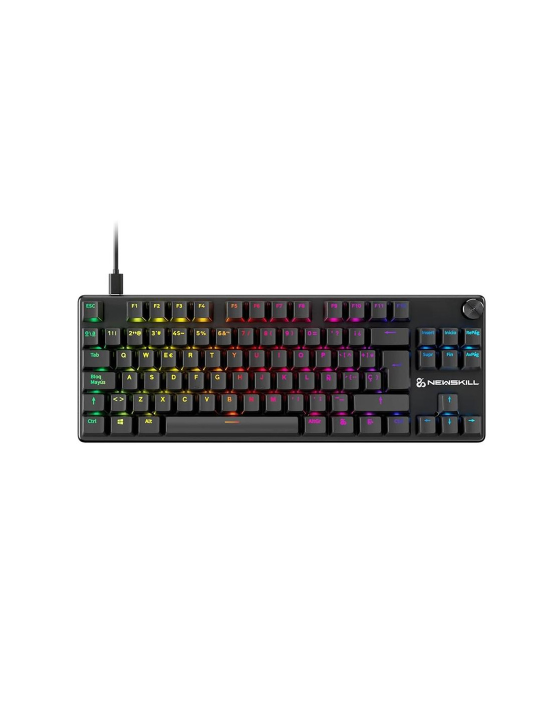 El **Newskill Serike TKL V2** es un teclado mecánico compacto diseñado para gamers que buscan **precisión, velocidad y personalización total** en cada partida. Con un diseño **tenkeyless (TKL)** de 88 teclas, ofrece un formato más ligero y ergonómico, ideal para setups con espacio limitado o para quienes priorizan la movilidad sin renunciar al rendimiento profesional. Su estructura de **aluminio** y teclas de **doble inyección ABS** garantizan una gran durabilidad, mientras que su **iluminación RGB personalizable** lo convierte en una opción tan funcional como visualmente impactante.