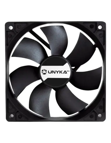 El ventilador Unyka de 120 mm está diseñado para ofrecer un flujo de aire eficiente y silencioso dentro de la carcasa del ordenador, siendo ideal para entornos donde se requiere una refrigeración constante y fiable. Su sistema de doble rodamiento de bolas garantiza una mayor durabilidad, mientras que el conector de 4 pines con control de temperatura permite una regulación automática según las necesidades térmicas del sistema.